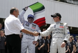 Rikknen a McLaren-Mercedes munkatrsait dicsri |